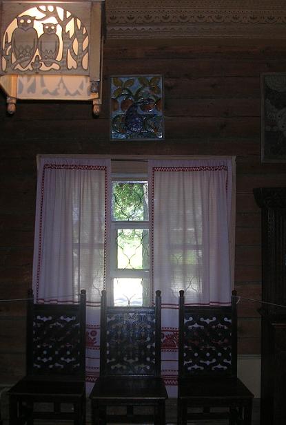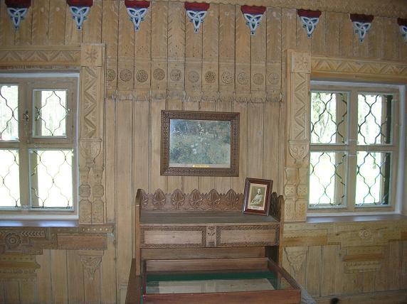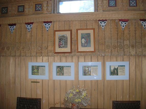 Каждая дощечка - шедевр резного искусства! На стенах - картины, на
