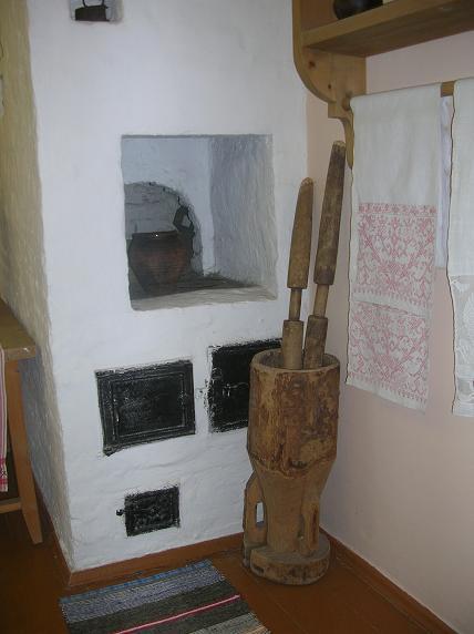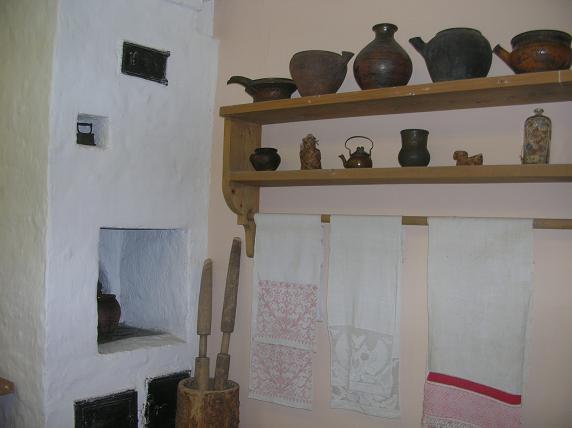 Внутри тоже всё просто. Домотканые половички и всевозможная кухонная