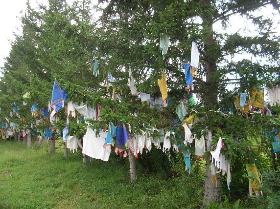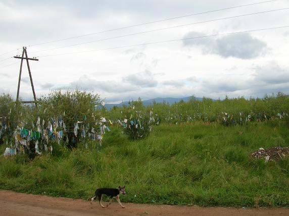 А вокруг... все деревья увешены платочками!