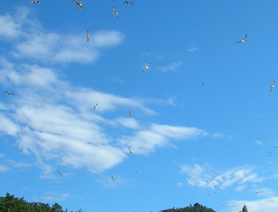 небе белокрылые чайки... Их здесь немеряное количество!
