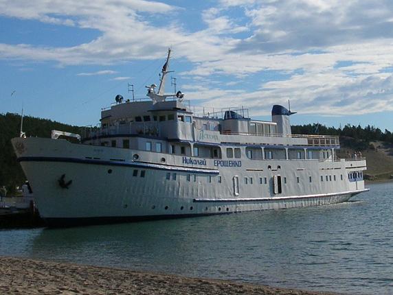 К пристани причалил белый красавец-теплоход.