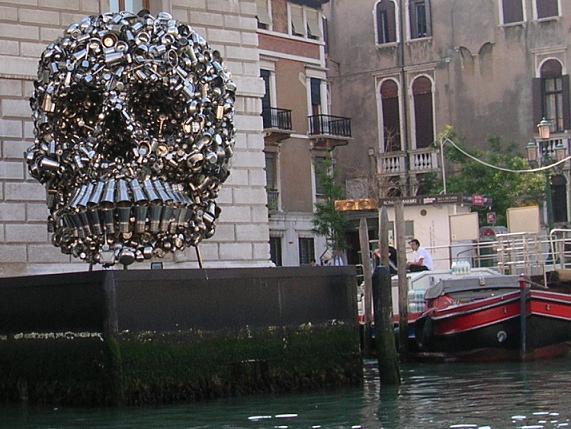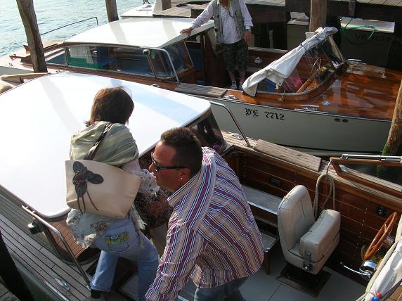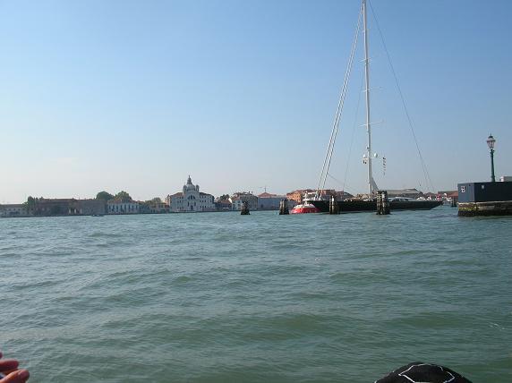 садится на яхту и плывет по окраине Венеции. А другая половина