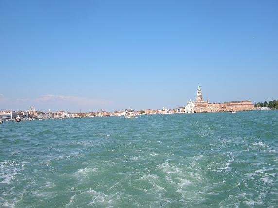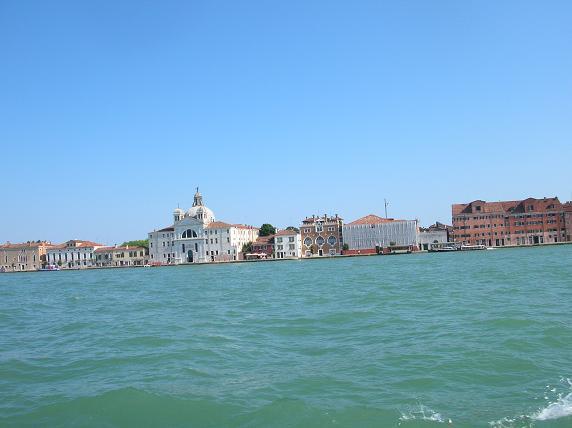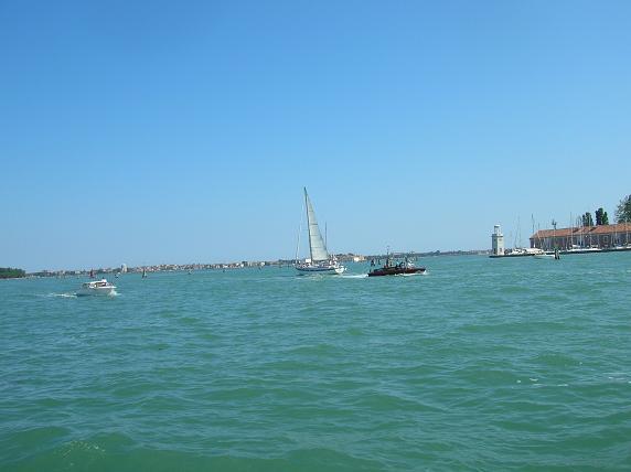 плывем уже все вместе на быстроходном катере, по окраине Венеции.