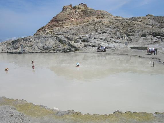вода бурлит от гейзеров - горячих минеральных источников.