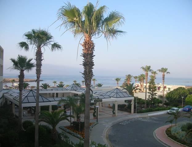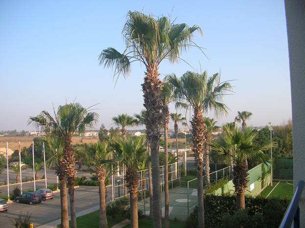 что за пальмами отеля простирается выжженая голая земля настоящего