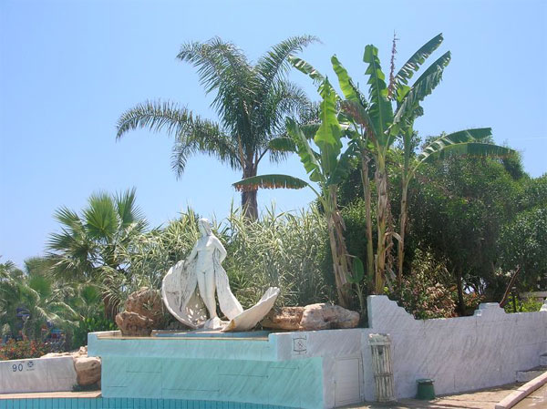 по течению... А вокруг красотища - пальмы, цветы, музыка, скульптуры