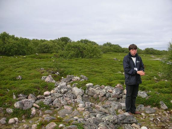 человек), увлеченно рассказывает о загадочных стоянках древнего
