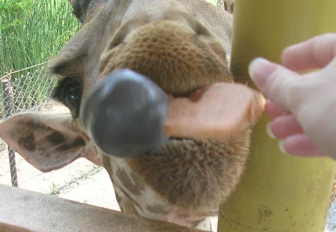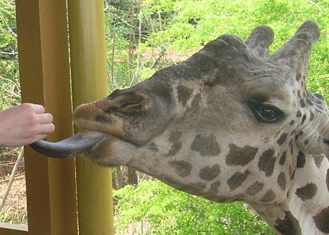 умница такая, осторожненько берет языком угощение… даже осторожней,