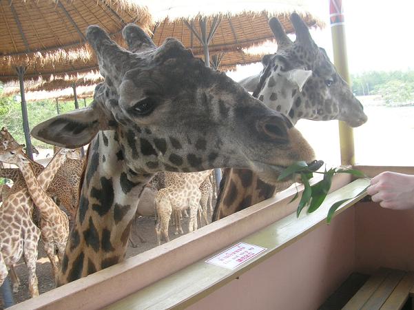 ведрах продают для них еду. Там морковка, бананы, ветки с листьями..