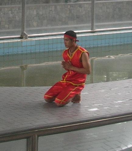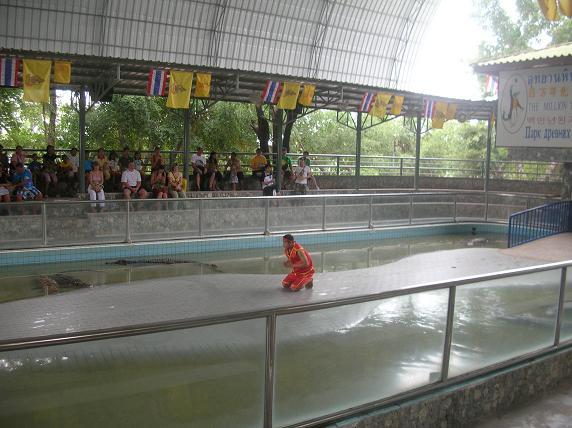 остров среди бассейна кишащего аллигаторами выходит таец и начинает
