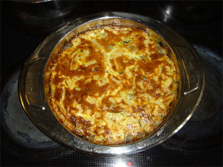 картофель и всё залить сверху яйцом, размешанным с одной ложкой
