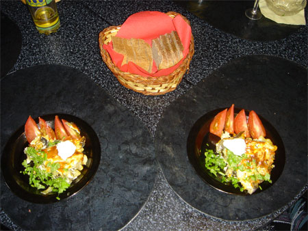 уложить на дно картофель , порезаный кубиками, сверху пару ложек