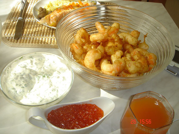Ещё удивляла креветками в кляре с