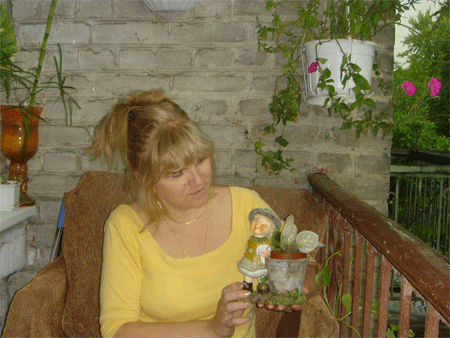 маленький гномик с фиалками в горшочке:) Лю хочет "развести" побольше