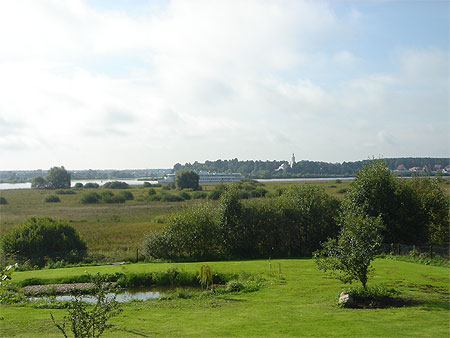 Волгой , по которой плывут теплоходики, с отличным видом на беленькую