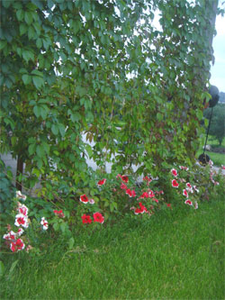 на даче. всё растёт ради интереса:) Цветов пока мало- по -новому