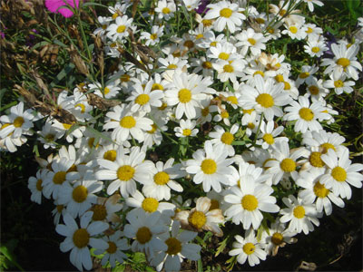 распланировали участок, ромашки, растущие компактными низкими кустиками,